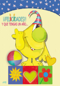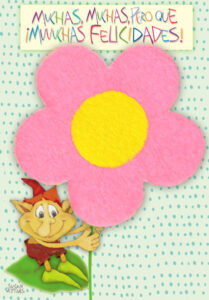 Standard cards Dimensions: 13×8 cm. New and original! Embossed with felt, balloons, mirrors, pop-ups and more surprises… many surprises.